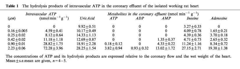 It is first important to appreciate that immediately upon its release into the bloodstream ATP is hydrolysed (broken down) by specific enzymes. We were able to measure this process in isolated rat hearts using a method called RP-HPLC. Some example data are shown below.